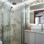 A Seaview Villa With Piano By Chania Living Stories magába foglal egy fürdőszobát walk-in zuhanykabinnal és külön WC-vel. A fürdőszobákban hajszárító, törölközők és papucsok is biztosított kényelme érdekében.